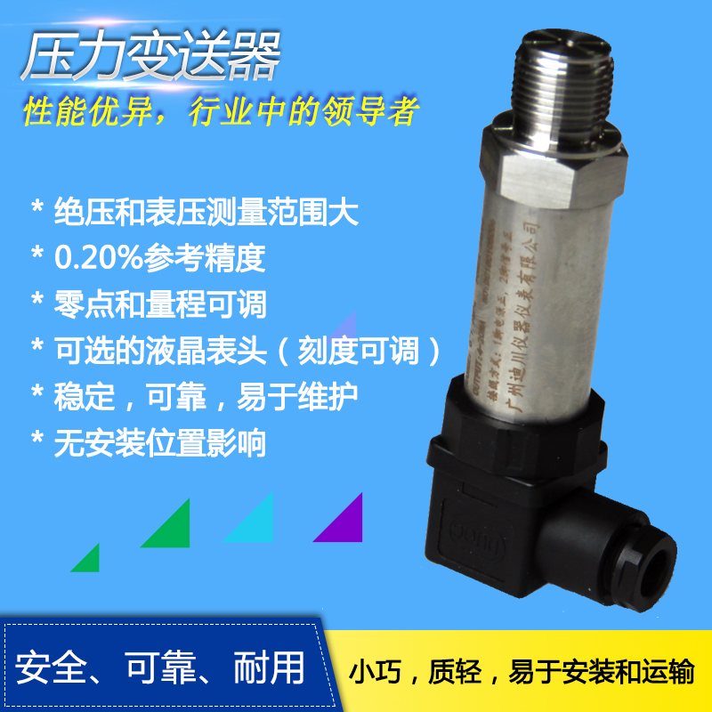 是廣(guǎng)州迪川儀器(qì)儀表有限公(gōng)司壓力變送(song)器系列中的(de)經濟型産品(pin),是高可靠性(xìng)、長期穩定性(xing)和易于維護(hù)的設計。結構(gòu)安全、可👌靠、耐(nai)用。