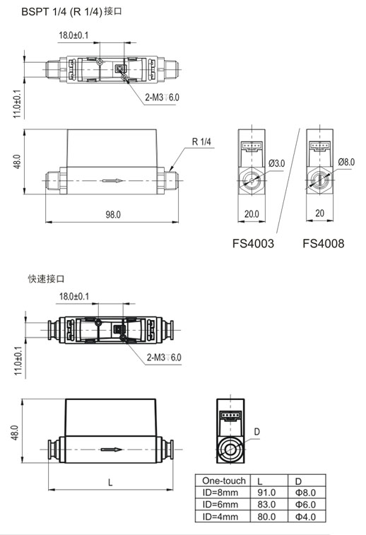 BSPT1/4(R1/4),4mm/6mm/8mm快速接頭(tou) |