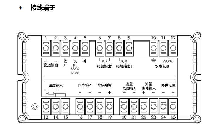 XSR流量補償積(ji)算記錄儀流量積(jī)算儀 外形尺(chi)寸及接線端子